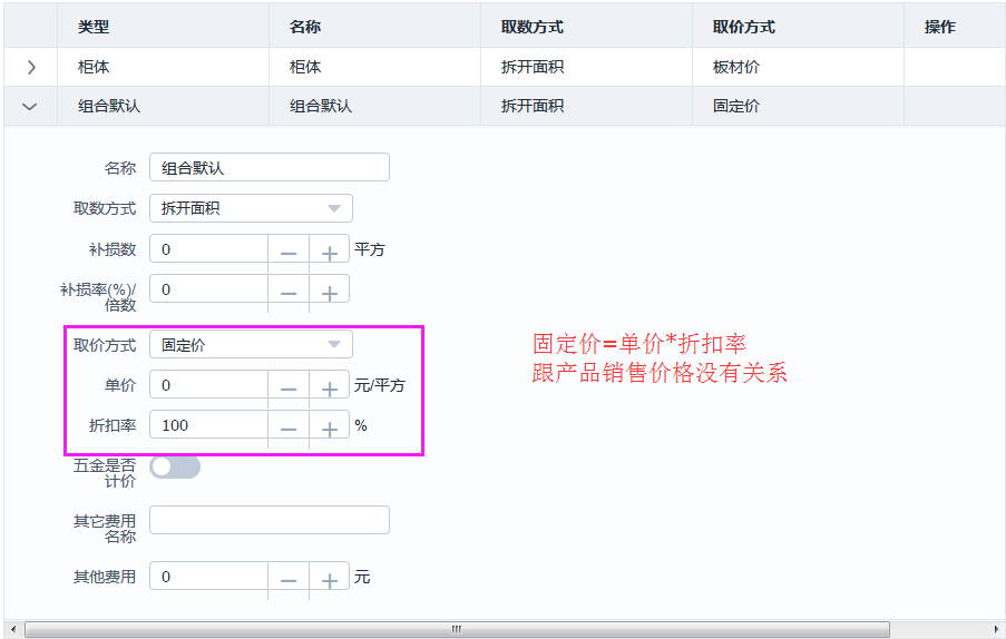 第二种方式:未开启按组合默认,则抽屉的报价会按根据组合里面抽屉的取价方式