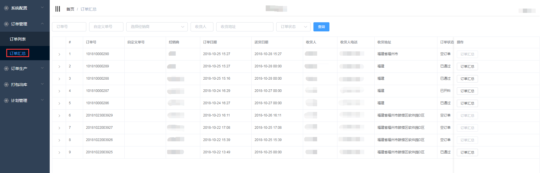 点击订单管理—订单汇总,进入订单汇总界面