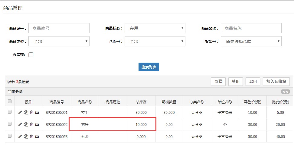 备注:商品的数据是来源于商品管理,对新增商品操作请参照《商品新增,修改,复制操作》文档