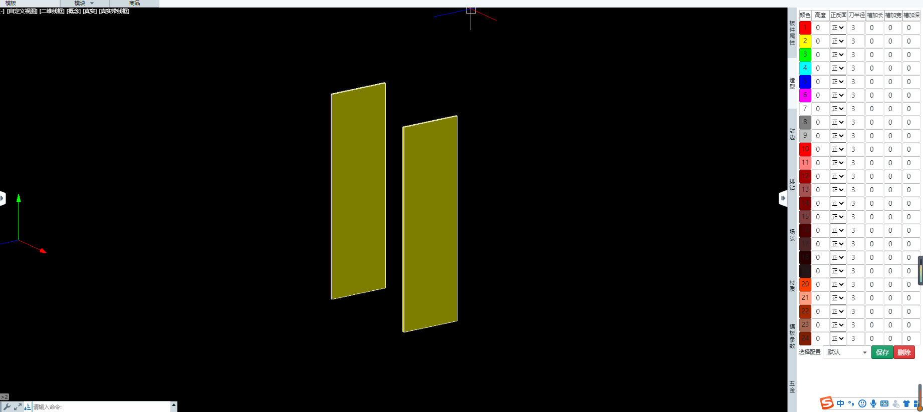 打开晨丰功能属性栏,点击造型,在命令行中输入对应的颜色数字,即可修改板件颜色;