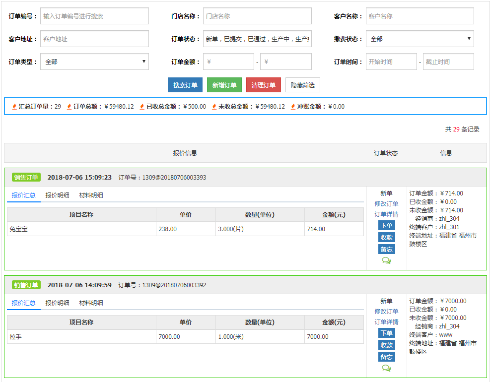 备注:只有下供货订单子单才会在对应的供货店铺生产一笔销货单,其他类型不会生成,并且下给自己店铺的供货订单也不会重新生成