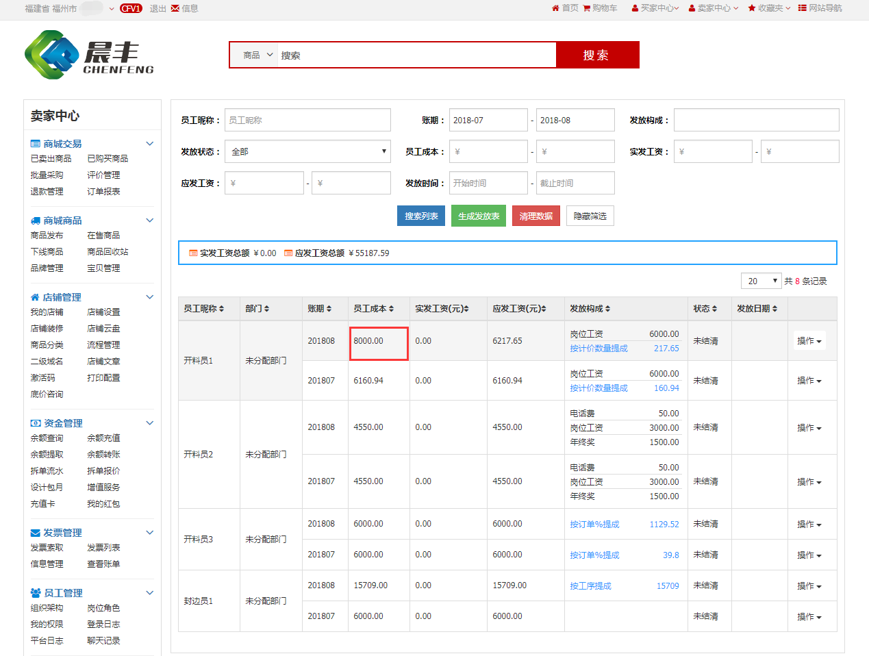 可对员工成本、实发工资和应发工资进行修改;员工成本即聘用该员工所用的所有成本,默认等于应发工资,用户可对员工成本进行微调;实发工资为店铺实际发放给该员工的工资