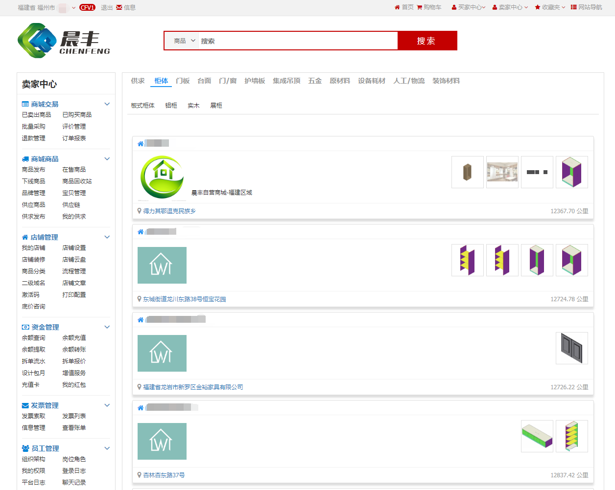 消费者:可在晨丰爱家网搜索销售商品、设计和工程施工的服务