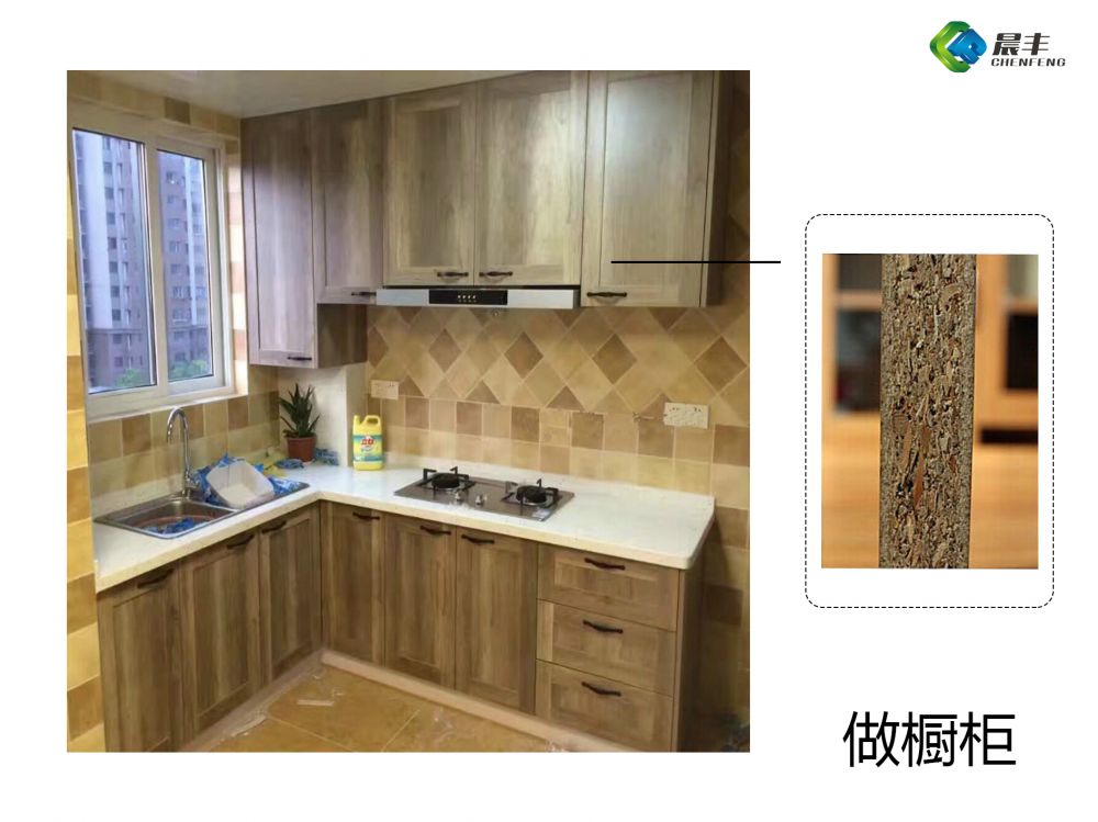 刨花板易加工,优质刨花板不会产生异味,更环保,且抗污能力强,可用其作橱柜的架子、底板、背板、抽屉,性能佳,且价格低廉,具备经济优势。